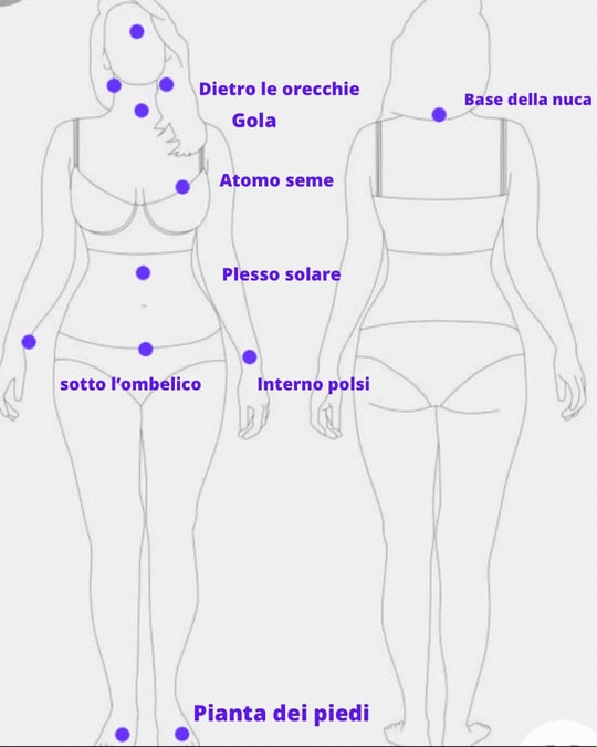 Nella foto troverai i punti dove applicare L’ELISIR con massaggi delicati in senso orario e consapevoli.